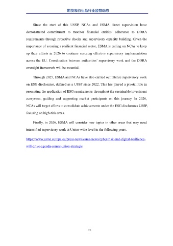 NCAs will target efforts to consolidate achievements under the ESG disclosures USSP,
