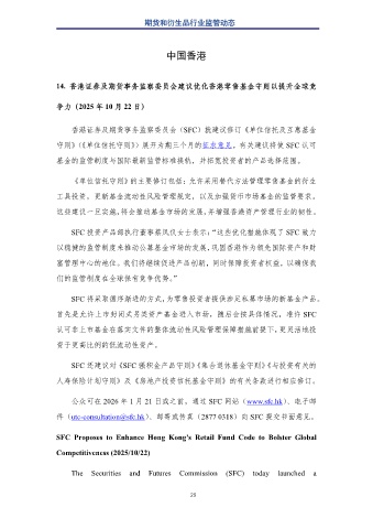 14. 香港證券及期貨事務(wù)監(jiān)察委員會建議優(yōu)化香港零售基金守則以提升全球競
